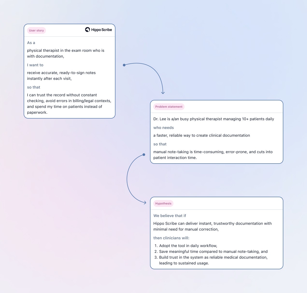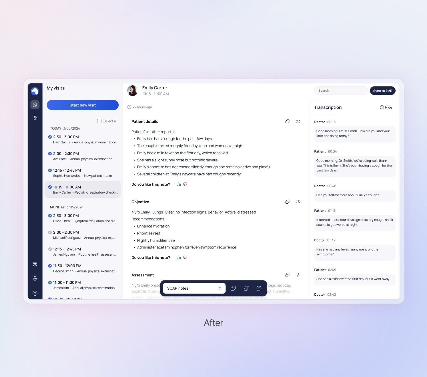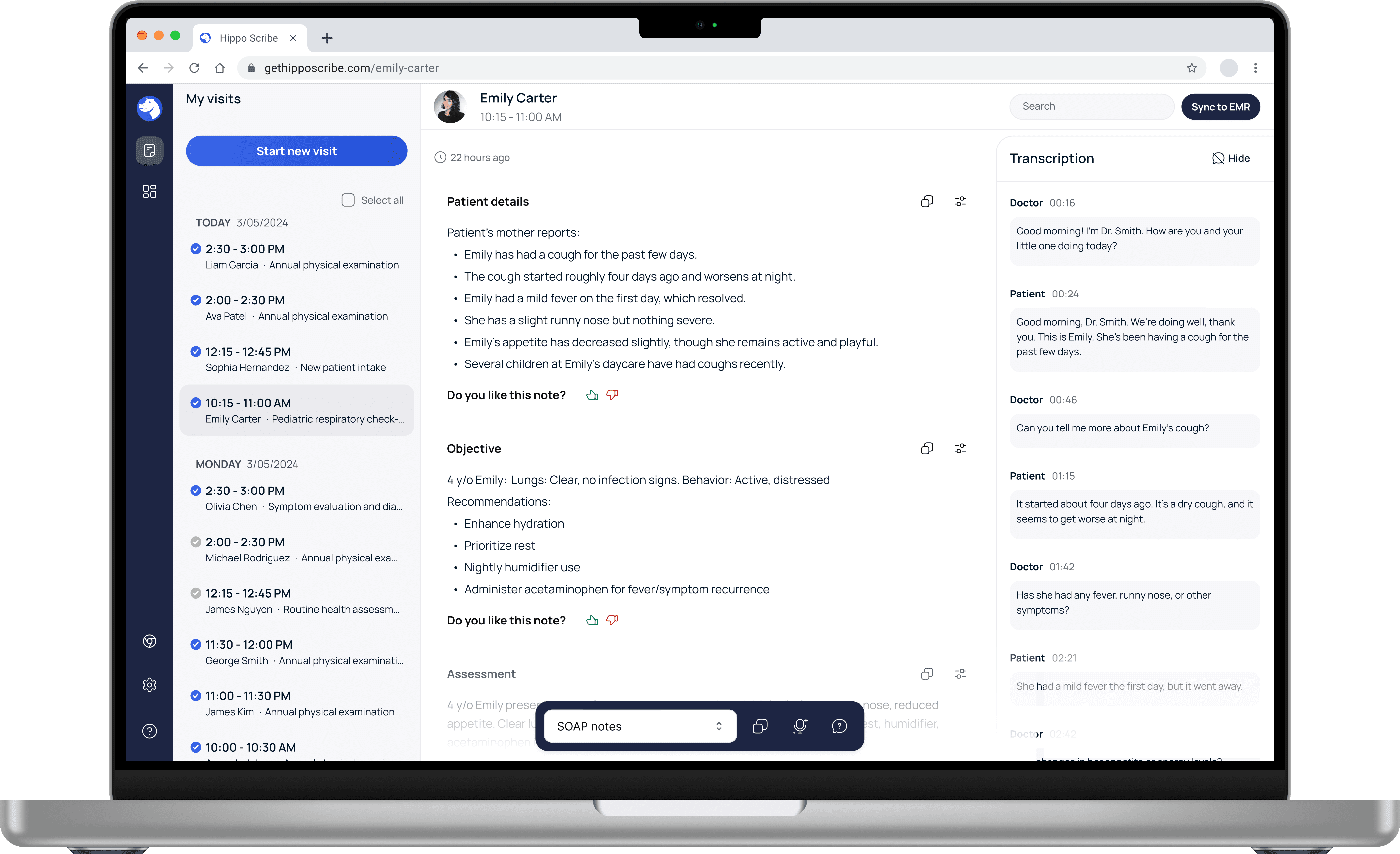 Hippo Scribe, an ai-assisted medical note platform that uses ambient listening or dictation to capture patient visits, automatically generates medical notes, and integrates them with Electronic Medical Record (EMR) systems.