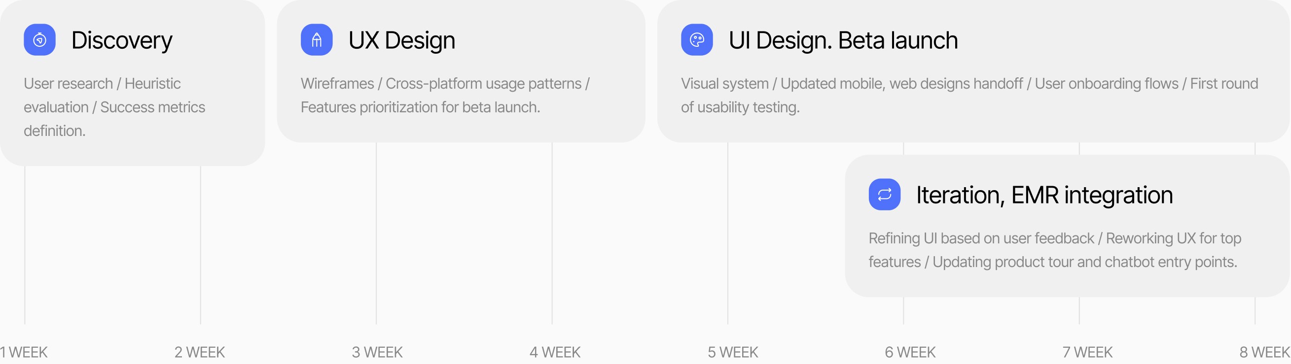 The team was aiming for a launch in 3 months but was at risk of missing product-market fit due to poor usability and fragmented workflows. We followed an iterative Double Diamond process, prototyping weekly and testing improvements quickly.
