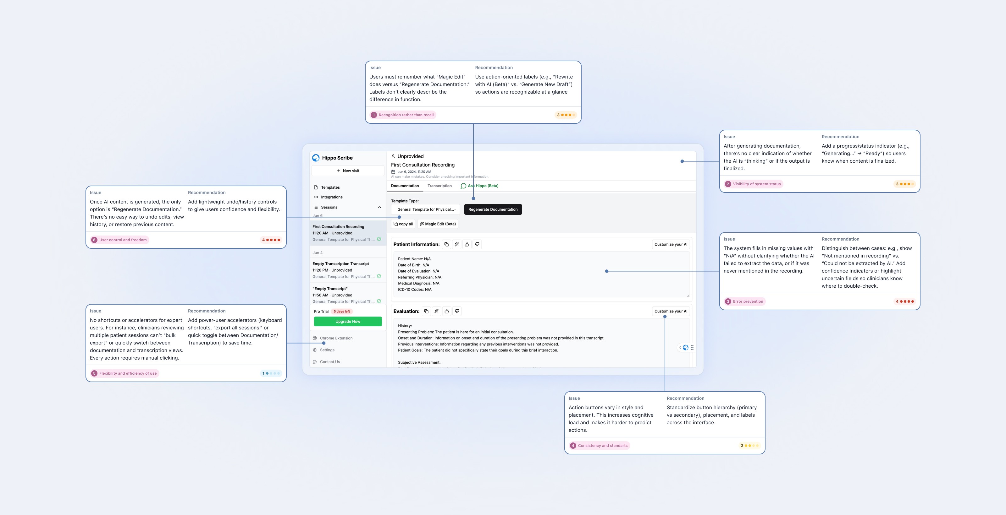 To empower users to guide the AI I introduced a template builder with real-time preview based on patient visits and maintained visual consistency by reusing layout and spacing patterns.