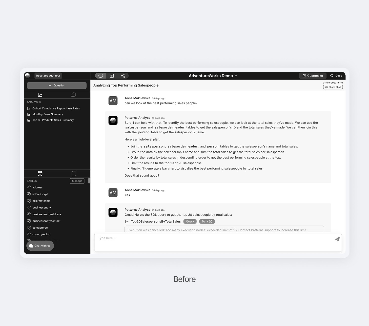 Patterns, Y Combinator-backed startup that helps companies analyze internal data and receive custom, AI-generated insights.