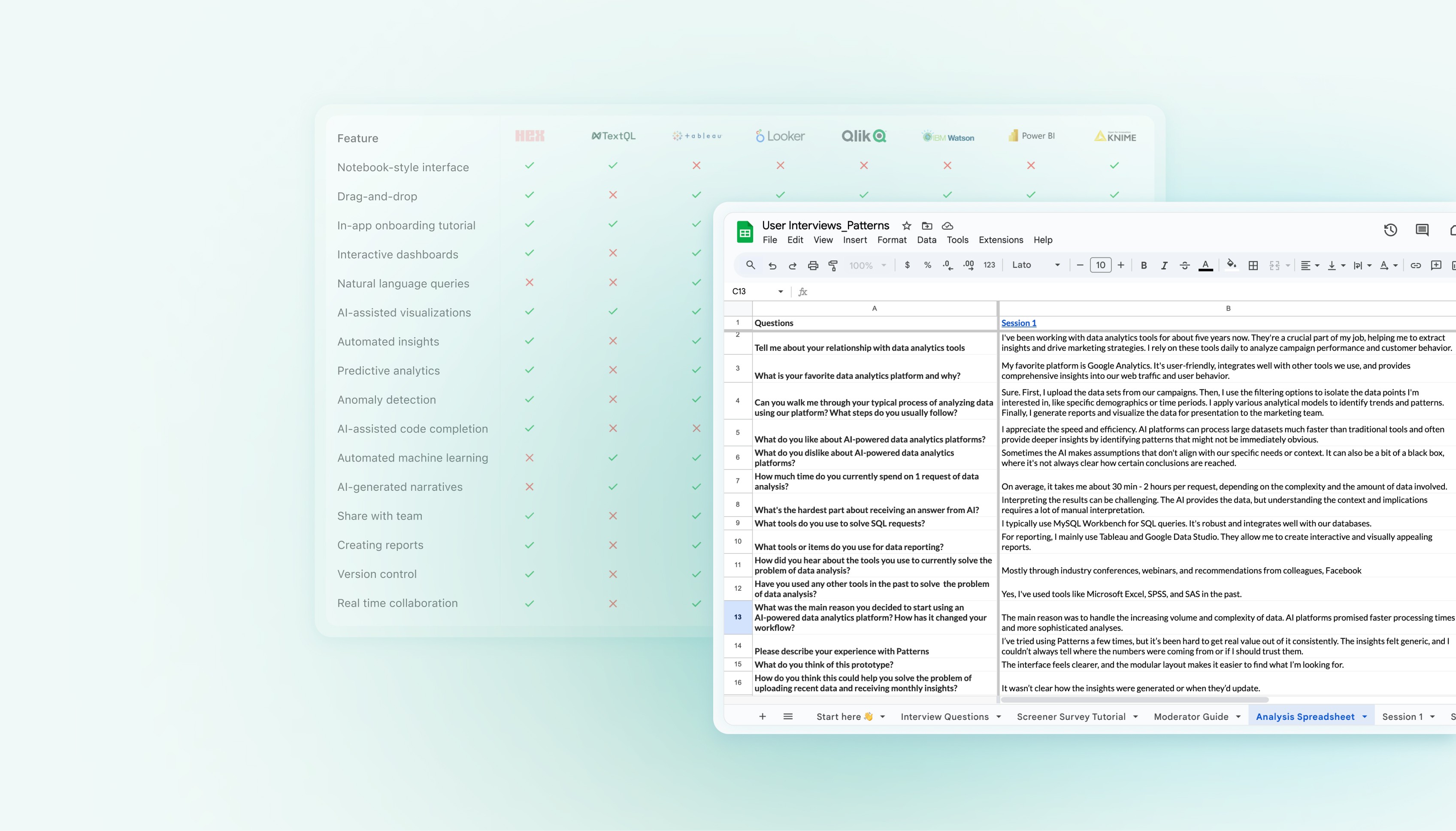 I interviewed 16 users from operations, finance, and leadership teams. I asked how they currently get insights from data, what tools they use, and where friction happens. I planned sessions, ran interviews, and synthesized learnings into user needs and pain points.