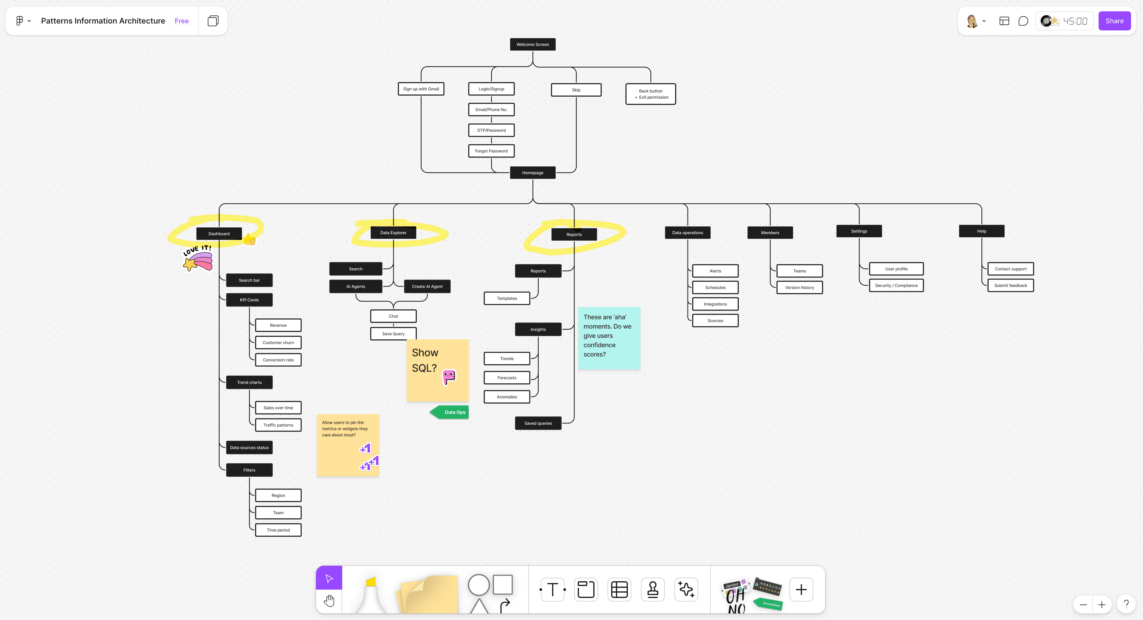 We focused on three flows for the MVP: onboarding, workspace and smart insights.